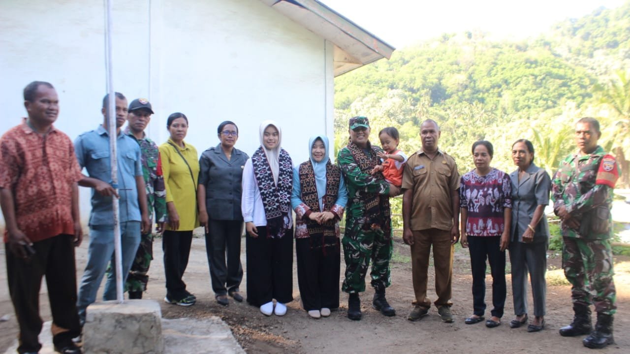NTT-SIKKA. Ketua Persit Kartika Candra Kirana Cabang XIV Kodim 1603/Sikka Ny. Ratna Denny Riesta P didampingi Dandim 1603/Sikka Letkol Arm Denny Riesta Permana S.sos., memberikan makanan tambahan(PMT) di dua titik lokasi yaitu di SDN Munegajut, Desa Riit, Kec. Nita dan di Posyandu Balita Dike, Desa Moulo’o, Kec. Paga