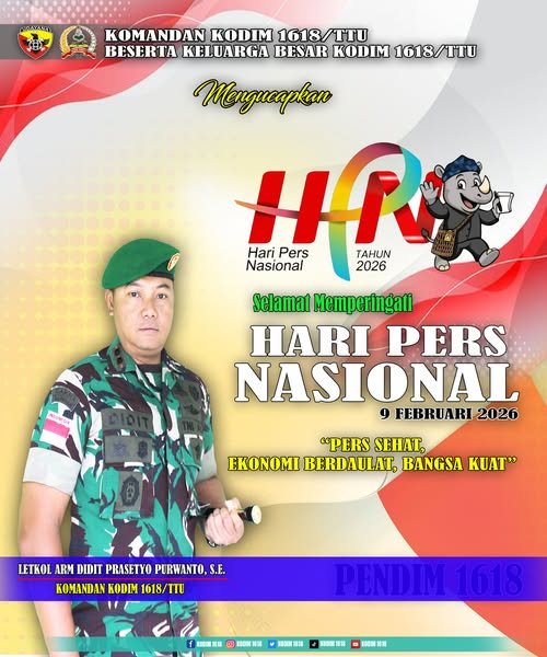 “Saya mengucapkan selamat memperingati Hari Pers Nasional Tahun 2026 kepada seluruh insan pers di Indonesia, khususnya di Kabupaten Timor Tengah Utara. Terima kasih atas dedikasi, kerja keras, dan kontribusi dalam menyampaikan informasi yang akurat dan berimbang,” ungkap Dandim 1618/TTU.
