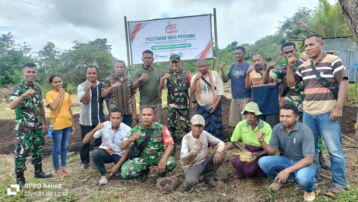 Flores Timur – TNI kembali menunjukkan komitmennya dalam mendorong ekonomi kerakyatan dengan melakukan peletakan batu pertama untuk pembangunan Koperasi Desa Merah Putih. Kegiatan ini berlangsung di Desa Pululera, Kecamatan Wulanggitang, Kabupaten Flores Timur, pada Kamis, 8 Januari 2026. Pembangunan ini dipimpin oleh Letkol Inf Erly Merlian, S.I.P., selaku Dandim 1624/Flores Timur, sebagai bagian dari program nasional yang dicanangkan oleh Presiden RI.