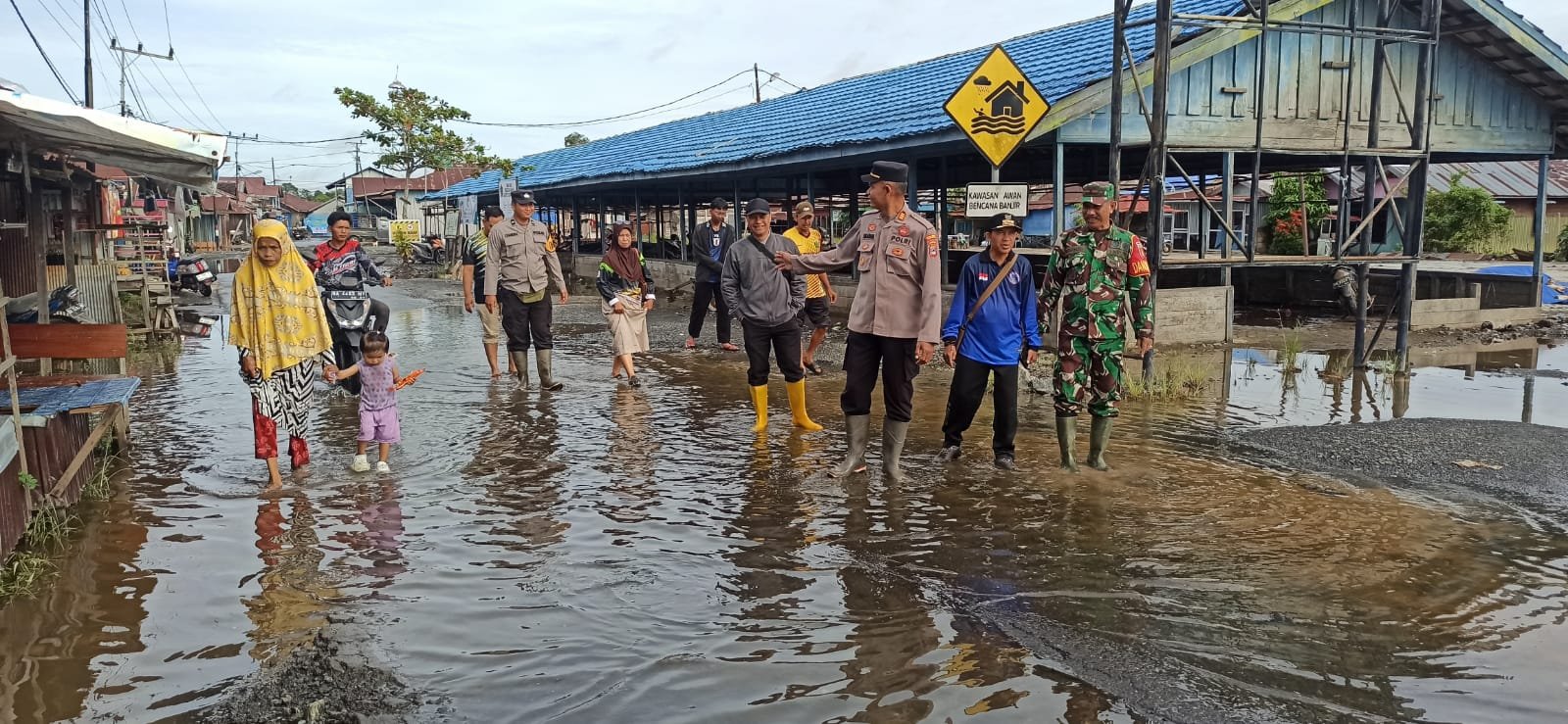 Barito Kuala — Sejumlah wilayah di Kecamatan Tabukan, Kabupaten Barito Kuala, mengalami genangan banjir dengan ketinggian air mencapai 7 hingga 10 sentimeter. Genangan tersebut merendam jalan utama, fasilitas pendidikan, serta rumah-rumah warga, sehingga memicu respons cepat dari unsur TNI, Polri, dan pemerintah daerah.