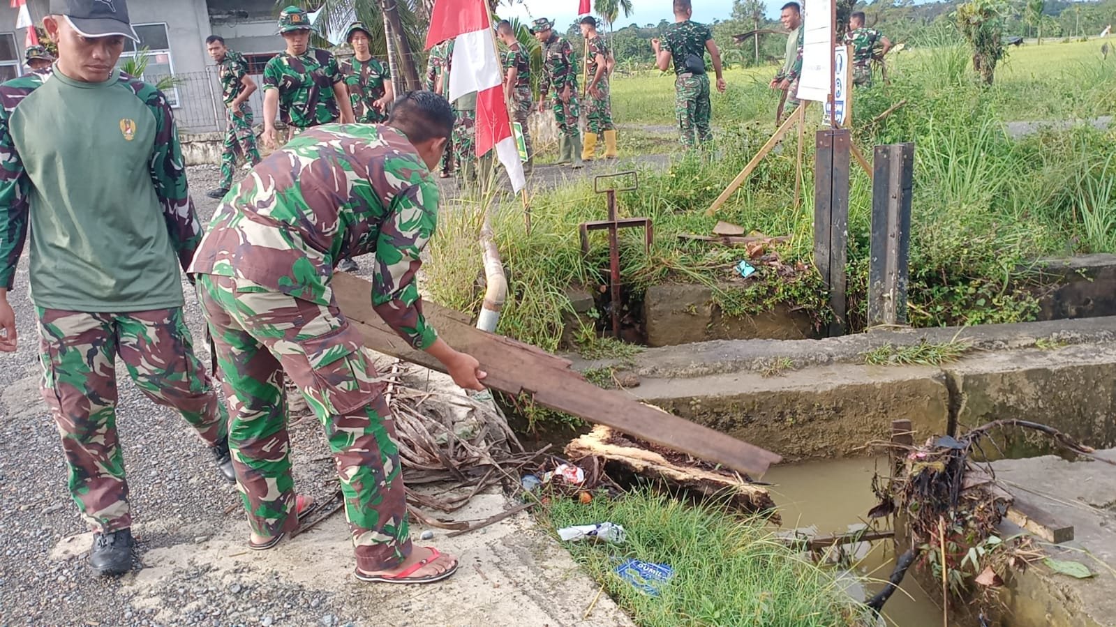 Adapun sasaran pembersihan meliputi sampah yang berada di pinggir jalan, serta material yang menghambat aliran air di irigasi maupun drainase sekitar lokasi kegiatan.