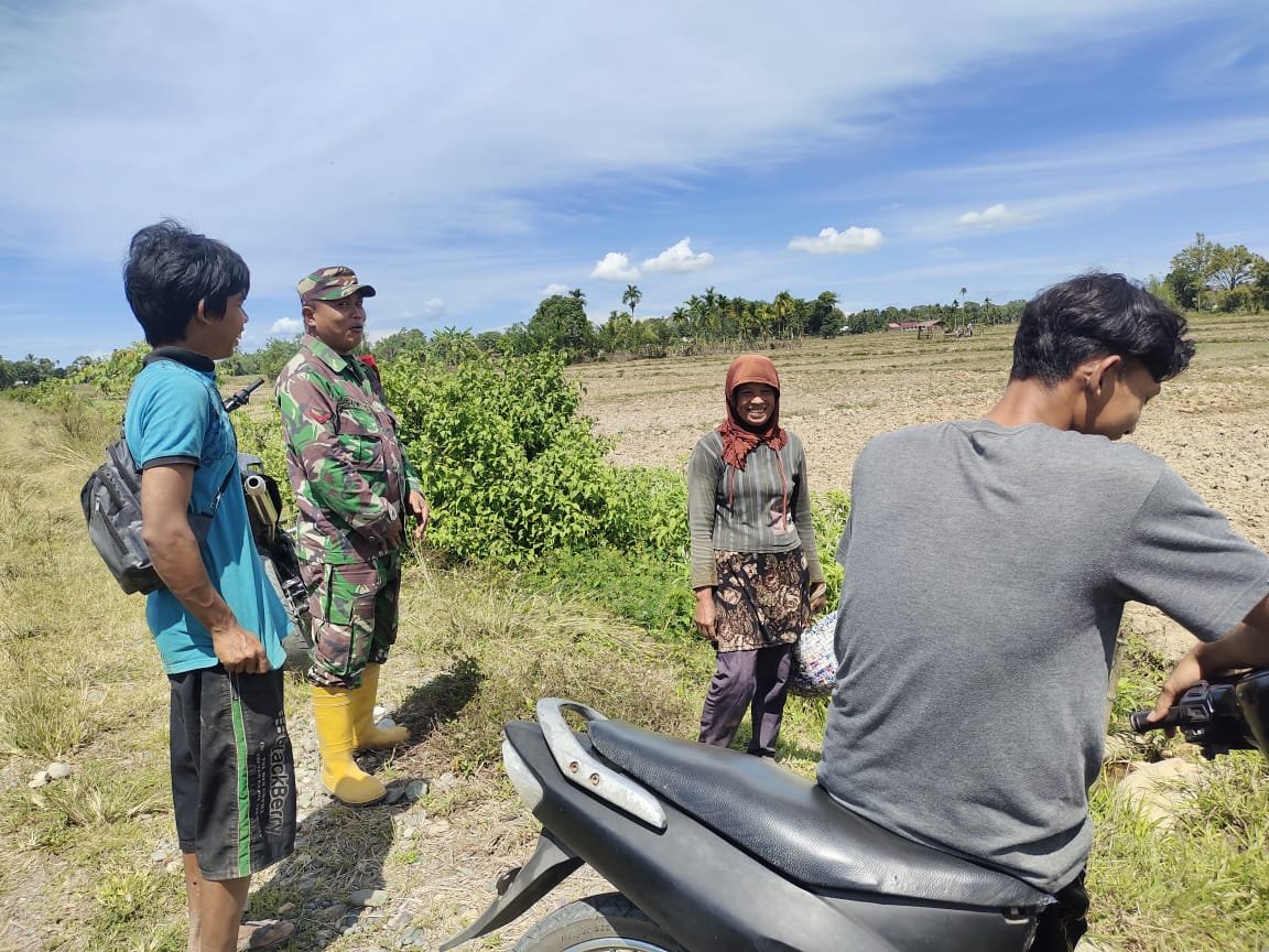 Lewat komunikasi sosial, Babinsa Posramil 05/PC Kopda Suwito di sela sela Patroli Rutin yang bersangkutan menyempatkan diri singgah dan bercengkrama dengan warga desa binaan membahas masalah ketahanan pangan kepada warga yang di jumpai di di desa Seumantok Kecamatan Pante Ceureumen Kabupaten Aceh Barat, Senin (04/11/24).