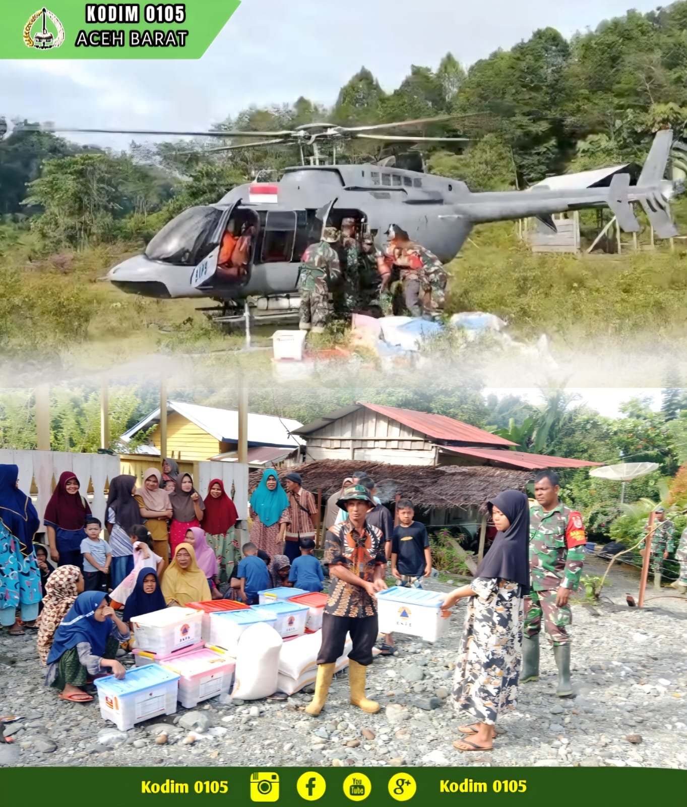 “Di tengah ujian ini, solidaritas dan kepedulian menjadi kunci utama. Bantuan yang dikirim menggunakan helikopter ini sangat membantu masyarakat dalam memenuhi kebutuhan dasar serta memberikan semangat untuk segera pulih. Kami dari Kodim 0105/Abar akan terus hadir di tengah masyarakat dan memastikan proses pemulihan dapat berlangsung optimal,” demikian Dandim.(0105).