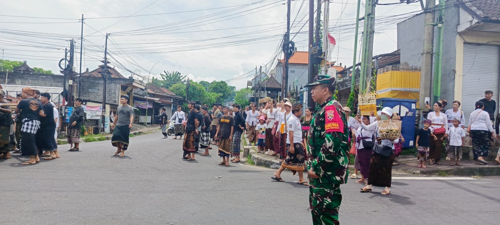 Ratusan warga tumpah ruah begitu guyub rukun melaksanakan arak-arakan pengabenan. Disisi lain, kita juga menggunakan fasilitas jalan umum, sehingga sebagai aparat kewilayahan tentu dituntut sigap untuk memastikan seluruh kegiatan berjalan aman dan lancar, “tuturnya.