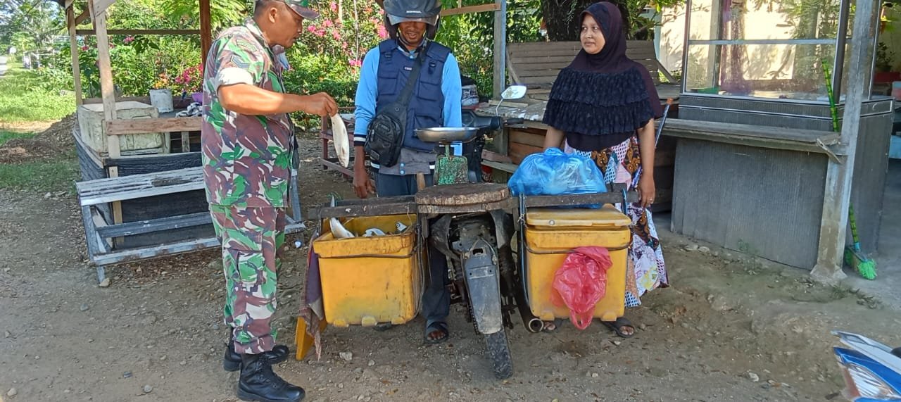 ACEH JAYA — Pererat hubungan dengan masyarakat sekaligus mendukung peningkatan kesejahteraan warga, Babinsa Koramil 03/Setia Bakti jajaran Kodim 0114/Aceh Jaya, Sertu Marwansah melaksanakan kegiatan silaturahmi dengan para pedagang ikan keliling di Desa Lhok Timon, Kecamatan Setia Bakti, Kabupaten Aceh Jaya, pada bulan suci Ramadhan, Senin (23/2/2026).