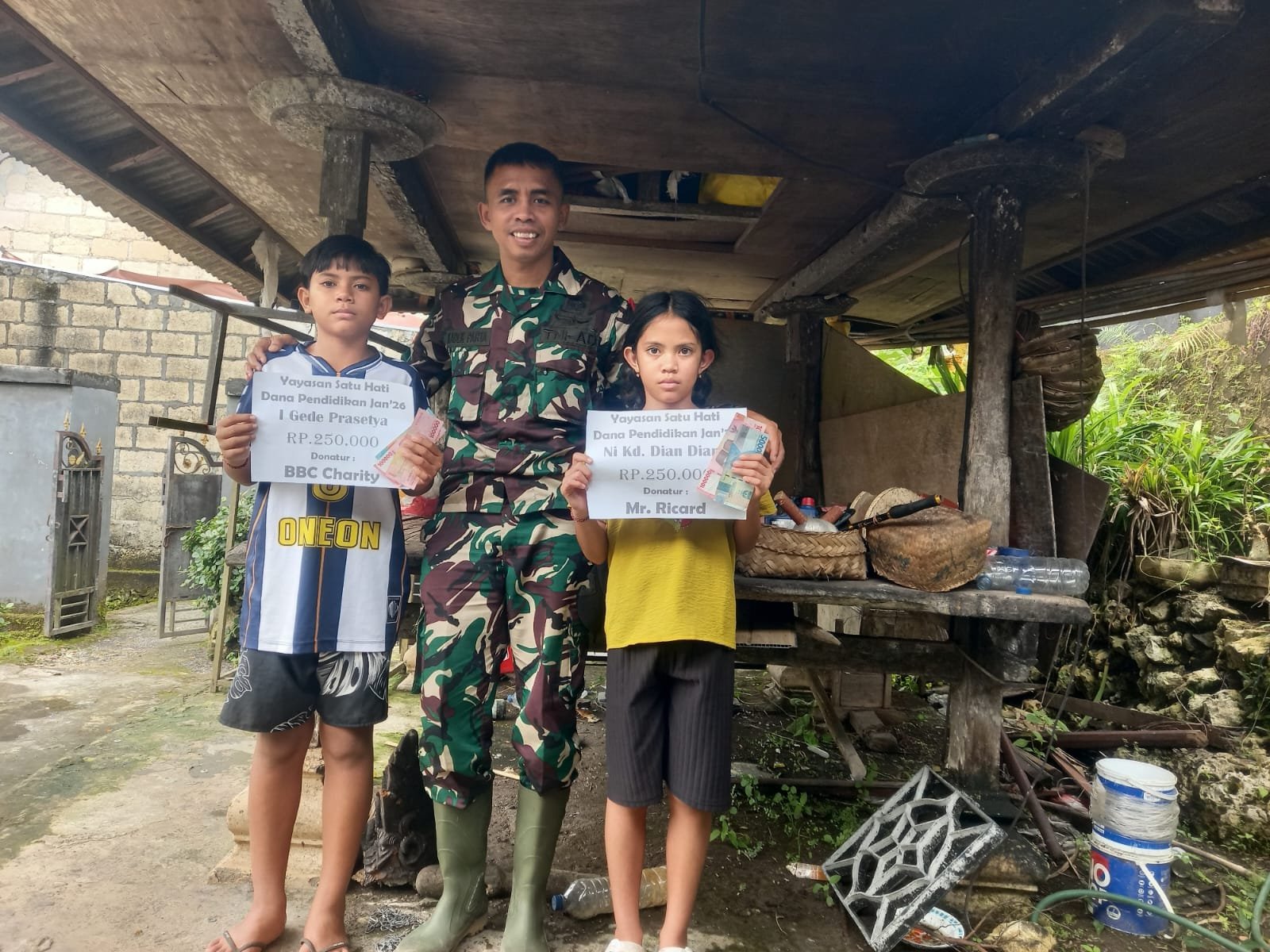 Sebagai Babinsa, Kadek Parta merasa senang dapat berkontribusi dalam penyaluran bantuan tersebut. Ia juga berharap agar dana pendidikan ini bisa dimanfaatkan sebaik-baiknya oleh Gede dan Kadek untuk menunjang pendidikan mereka. Keduanya pun menyampaikan rasa syukur dan terima kasih kepada Yayasan Satu Hati atas dukungan yang diberikan. “Kami sangat berterima kasih atas bantuan ini, karena sangat membantu kebutuhan sekolah kami,” ungkap mereka dengan ceria.
