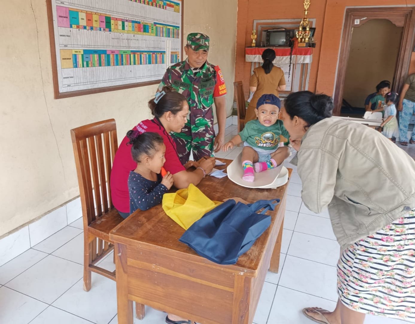 Bangli – Dalam upaya mendukung program kesehatan masyarakat, khususnya dalam pemantauan pertumbuhan balita, Babinsa Desa Bangbang dari Koramil 1626-03/Tembuku, Pelda Kadek Widiarta, berperan aktif dalam kegiatan Posyandu yang berlangsung di Banjar Dinas Bangbang Kangin, Desa Bangbang, Kecamatan Tembuku, Kabupaten Bangli pada Sabtu, 17 Januari 2026. Kegiatan posyandu ini dilaksanakan oleh Puskesmas Pembantu Desa Bangbang bekerja sama dengan para kader Posyandu Cempaka, dihadiri oleh 23 orang balita beserta orang tua mereka.