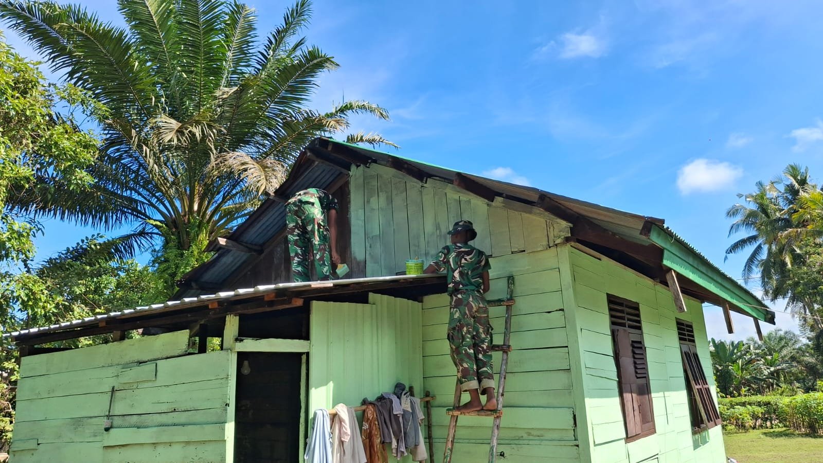 Pangkalan Banteng – Kemajuan di Program TMMD Ke-128 Kodim 1014/Pbn yang dihelat di Desa Sungai Hijau, Kecamatan Pangkalan Banteng sangat mengesankan. Pada tanggal 30 April 2026, pengecatan dinding rumah milik Bapak Bari telah mencapai tahap finishing, menandakan dekatnya penyelesaian proyek tersebut.