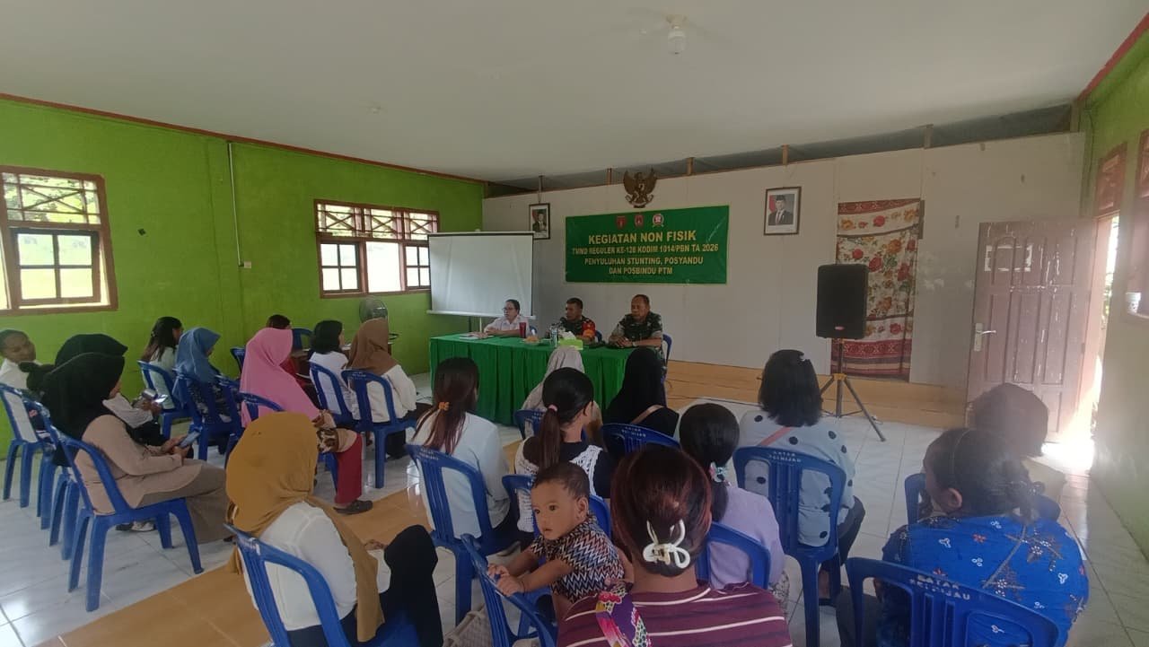 Pangkalan Banteng – Program TNI Manunggal Membangun Desa (TMMD) Ke-128 yang dilaksanakan oleh Kodim 1014/Pbn terus berkomitmen dalam memajukan pembangunan kualitas sumber daya manusia. Salah satu kegiatan tersebut adalah penyuluhan mengenai kesehatan ibu dan anak serta langkah pencegahan stunting yang berlangsung di Desa Sungai Hijau pada Rabu (30/04/2026).