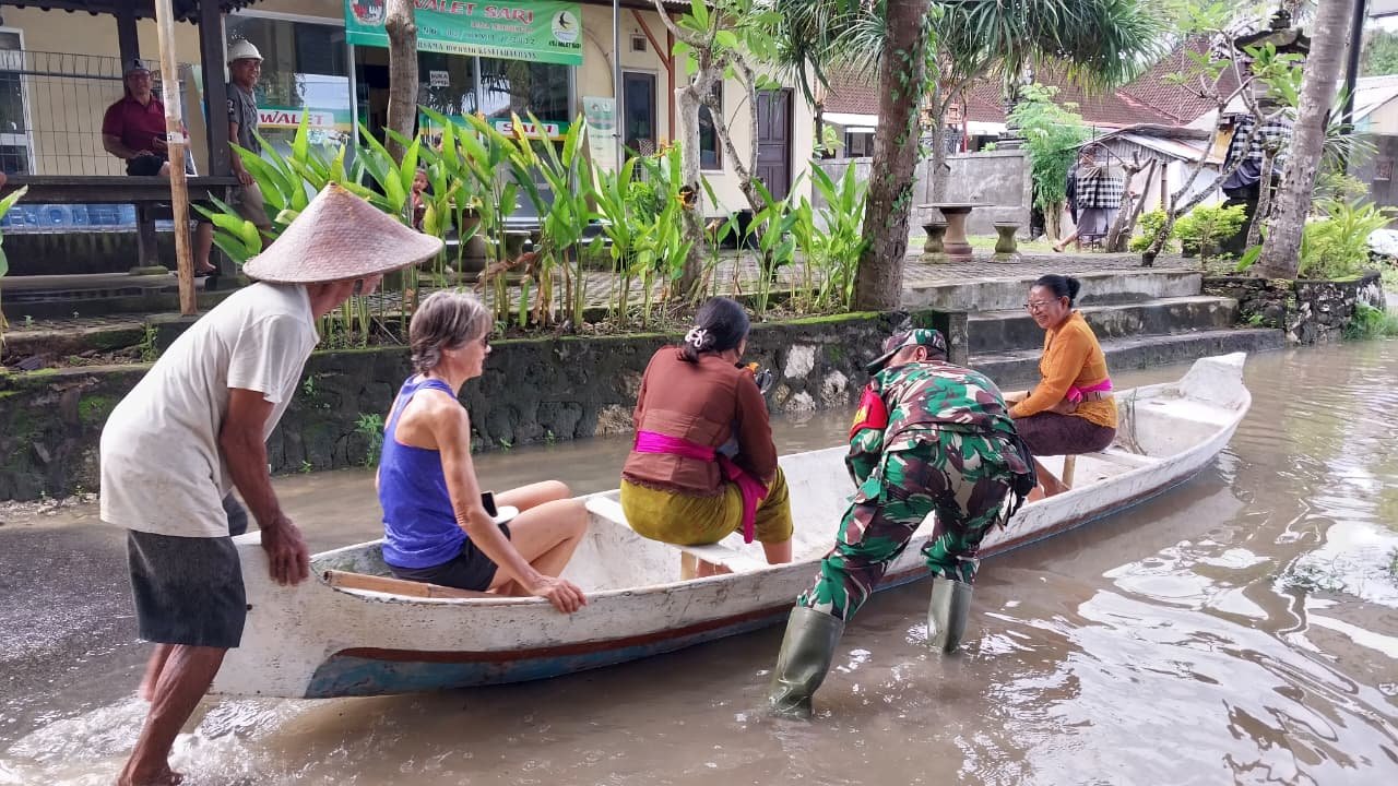 Inovasi Babinsa Lembongan: Perahu Nelayan Jadi Solusi Mobilitas di Tengah Banjir