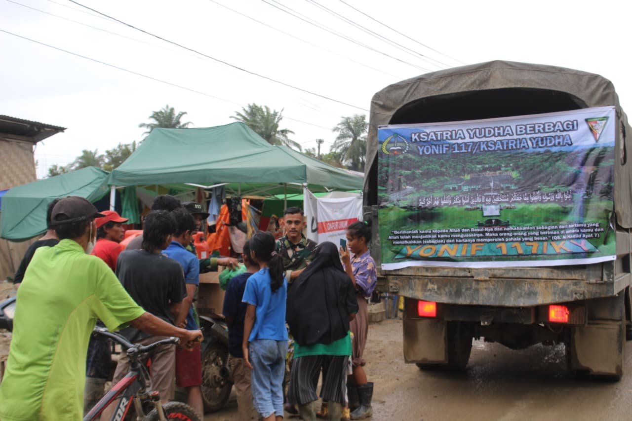 Bantuan diserahkan secara langsung oleh prajurit Yonif 117/KY kepada masyarakat, sebagai wujud empati serta kehadiran TNI di tengah masyarakat yang sedang mengalami musibah.