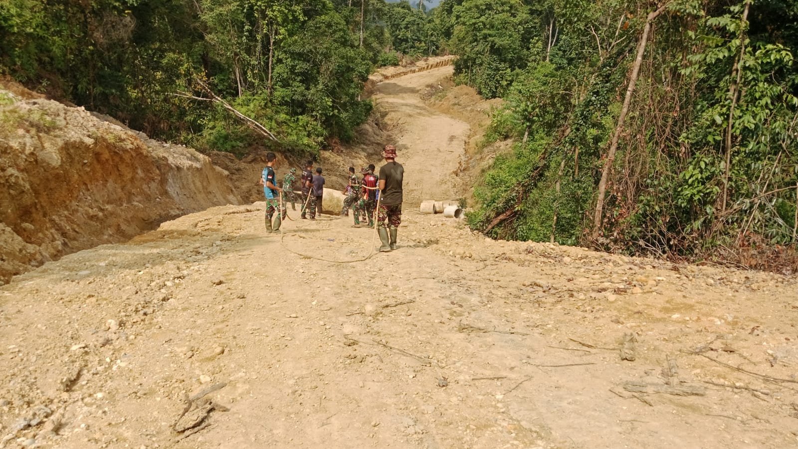 Kapten Inf Amrin yang merupakan personel tertua di lokasi mengatakan bahwa pemasangan gorong-gorong diperlukan untuk mengalirkan air dari sisi jalan.