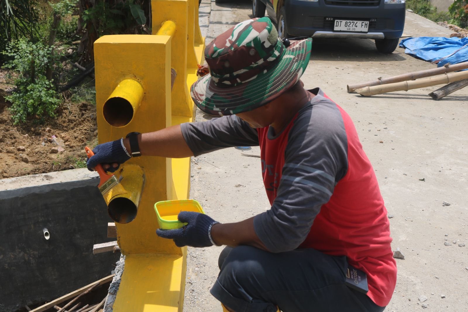 Kendari – Program TNI Manunggal Membangun Desa (TMMD) ke-127 yang dilaksanakan oleh Kodim 1417/Kendari telah membawa perubahan yang signifikan bagi masyarakat di Kelurahan Anggoeya. Salah satu inisiatif yang diambil adalah pengecatan pagar jembatan dengan warna-warna cerah, yang bertujuan untuk meningkatkan estetika sekaligus menjamin keamanan bagi para pengguna jalan.