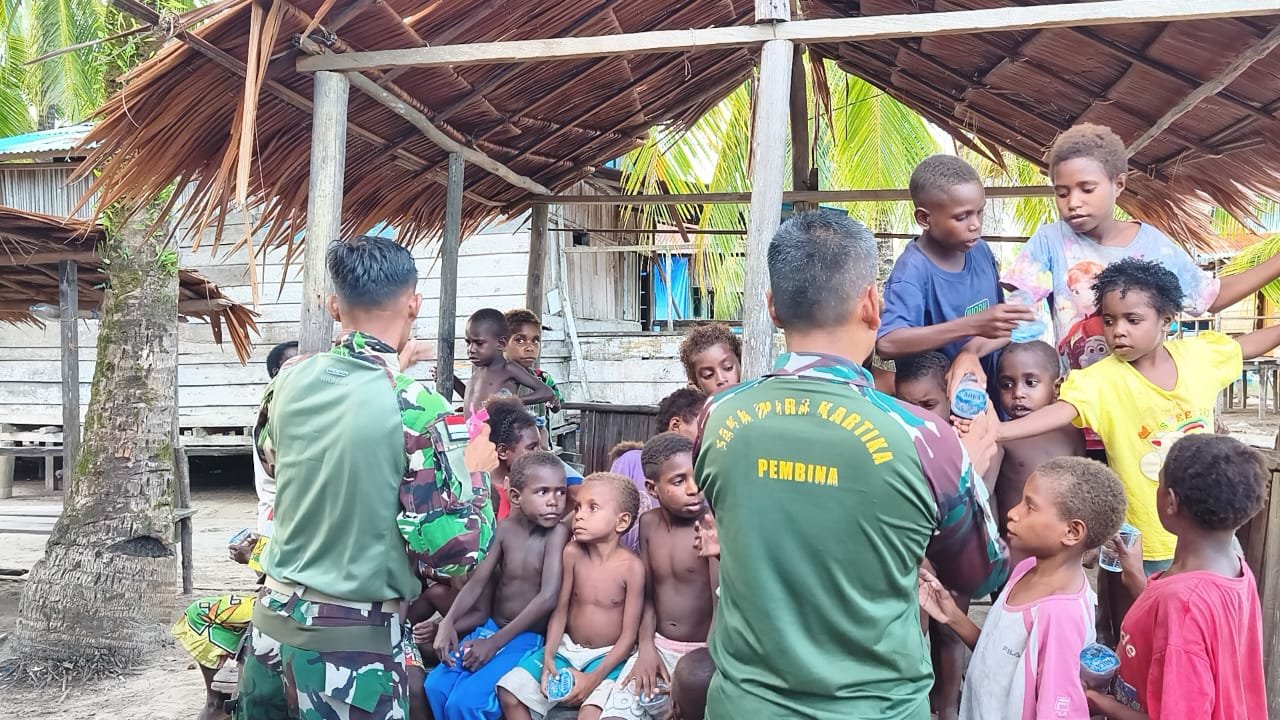 Salah satu aksi nyata dari program ini adalah kegiatan berbagi makanan ringan kepada anak-anak di Kampung Keakwa yang dilaksanakan oleh personel Satgas TMMD. Kegiatan ini menjadi salah satu upaya untuk menciptakan kedekatan emosional dengan masyarakat.