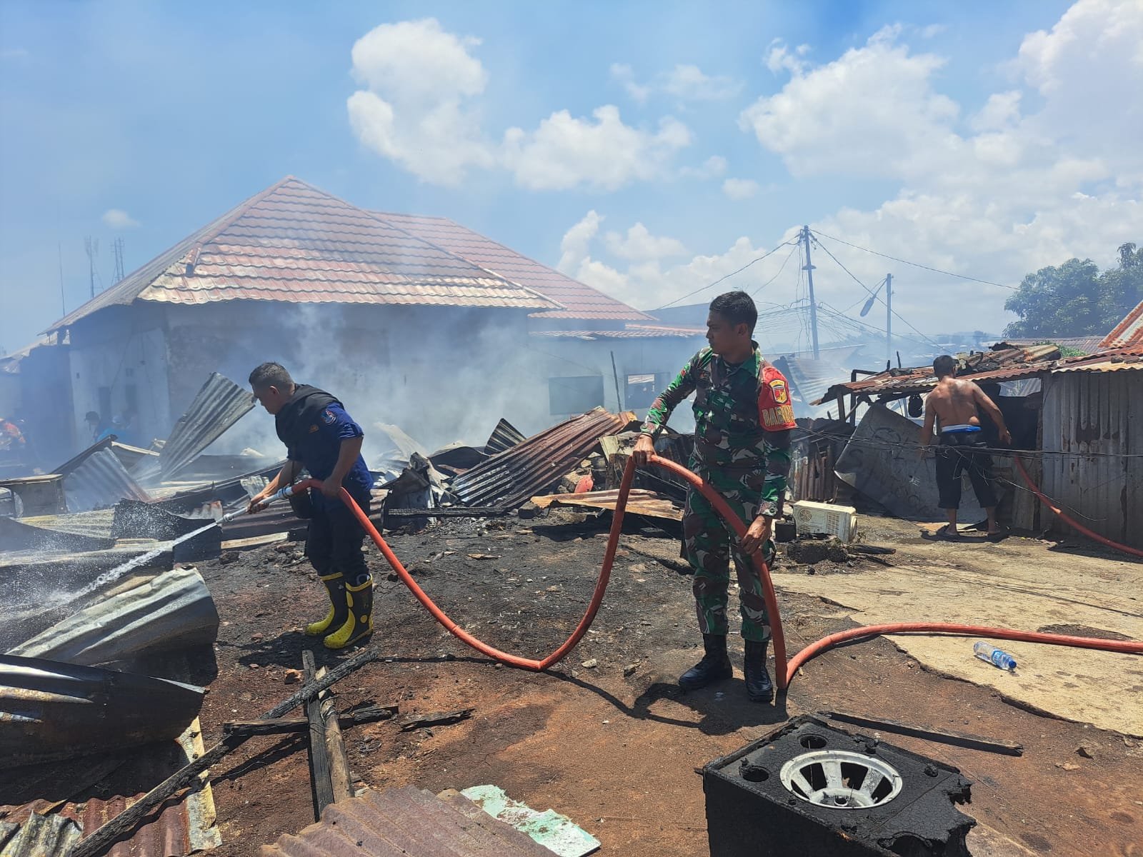 Dengan peralatan yang terbatas dan dukungan dari mobil pemadam kebakaran, para petugas gabungan serta warga melakukan berbagai langkah untuk mengendalikan api agar tidak merembet ke rumah-rumah di sekitarnya. Berkat kerjasama yang solid dan respon cepat dari semua pihak, api akhirnya berhasil dipadamkan.