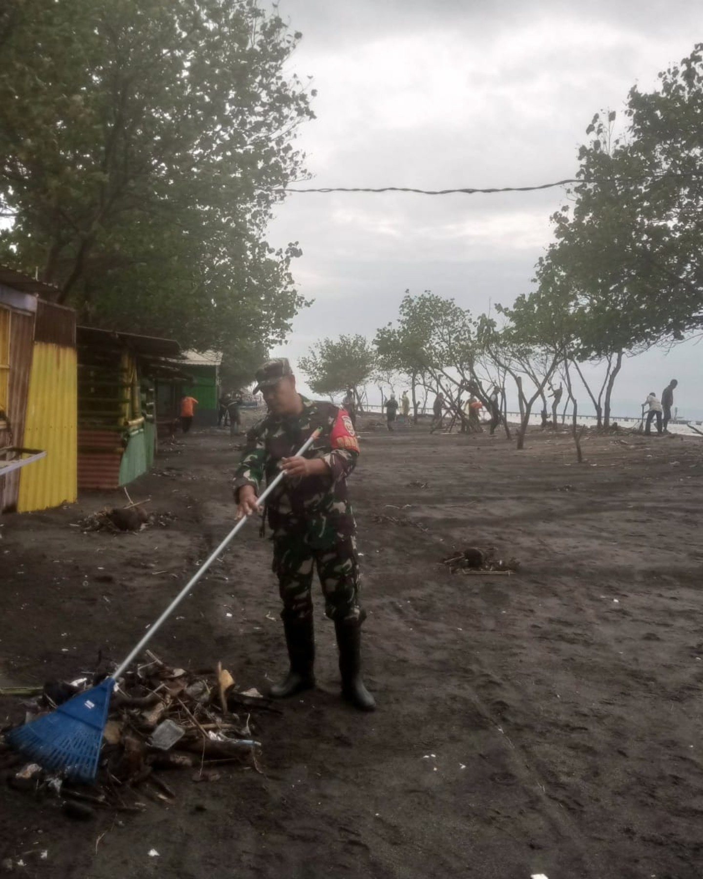 Kegiatan yang dimulai sejak pagi tersebut melibatkan puluhan personel Babinsa, staf kelurahan, dan warga yang bersatu padu menyisir garis pantai. Mereka mengumpulkan sampah plastik, potongan kayu, dan material lumpur yang terbawa arus banjir demi memulihkan kebersihan lingkungan. Kegiatan ini bukan hanya soal kebersihan, tetapi juga sebagai wujud kepedulian terhadap lingkungan yang sangat bergantung pada kondisi pesisir.