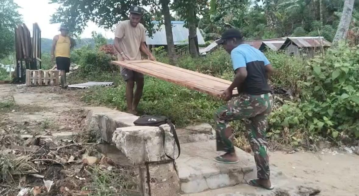 Kaimana – Kegiatan pengangkutan material untuk pembangunan di Kampung Sisir 2 dalam rangka pelaksanaan TMMD ke-127 menunjukkan semangat gotong royong yang tinggi antara TNI dan masyarakat. Kegiatan ini berlangsung pada hari Jumat, 13 Februari 2026.