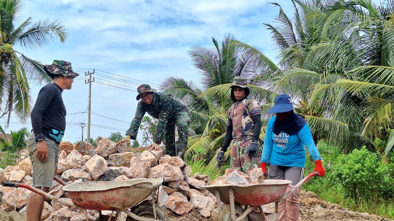 Keterlibatan para ibu tersebut memberikan warna tersendiri di tengah aktivitas pembangunan infrastruktur yang berlangsung. Mereka tampak bersemangat bergotong royong dengan prajurit TNI, menunjukkan kepedulian yang tinggi terhadap kemajuan lingkungan tempat tinggal mereka.