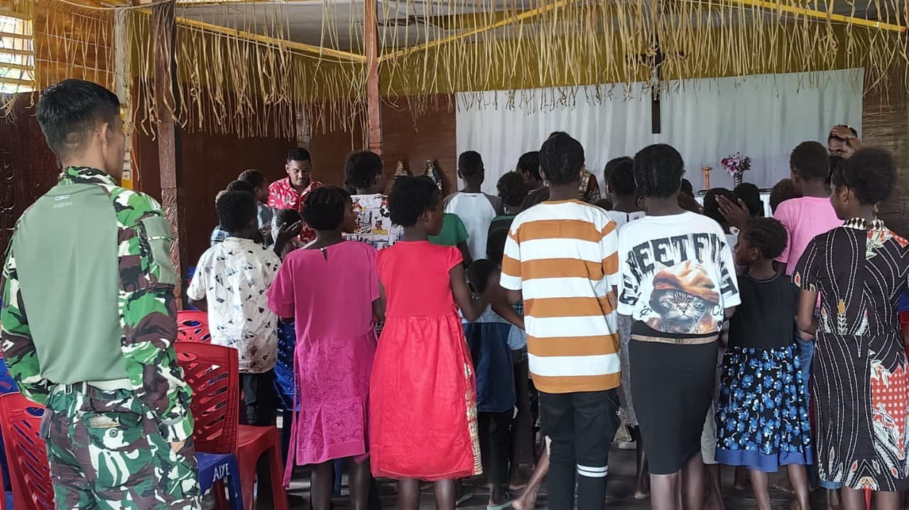Mimika — Ibadah bersama yang diadakan oleh personel Satgas TMMD ke-128 Kodim 1710/Mimika dengan masyarakat Kampung Keakwa menjadi gambaran nyata dari pendekatan humanis TNI.