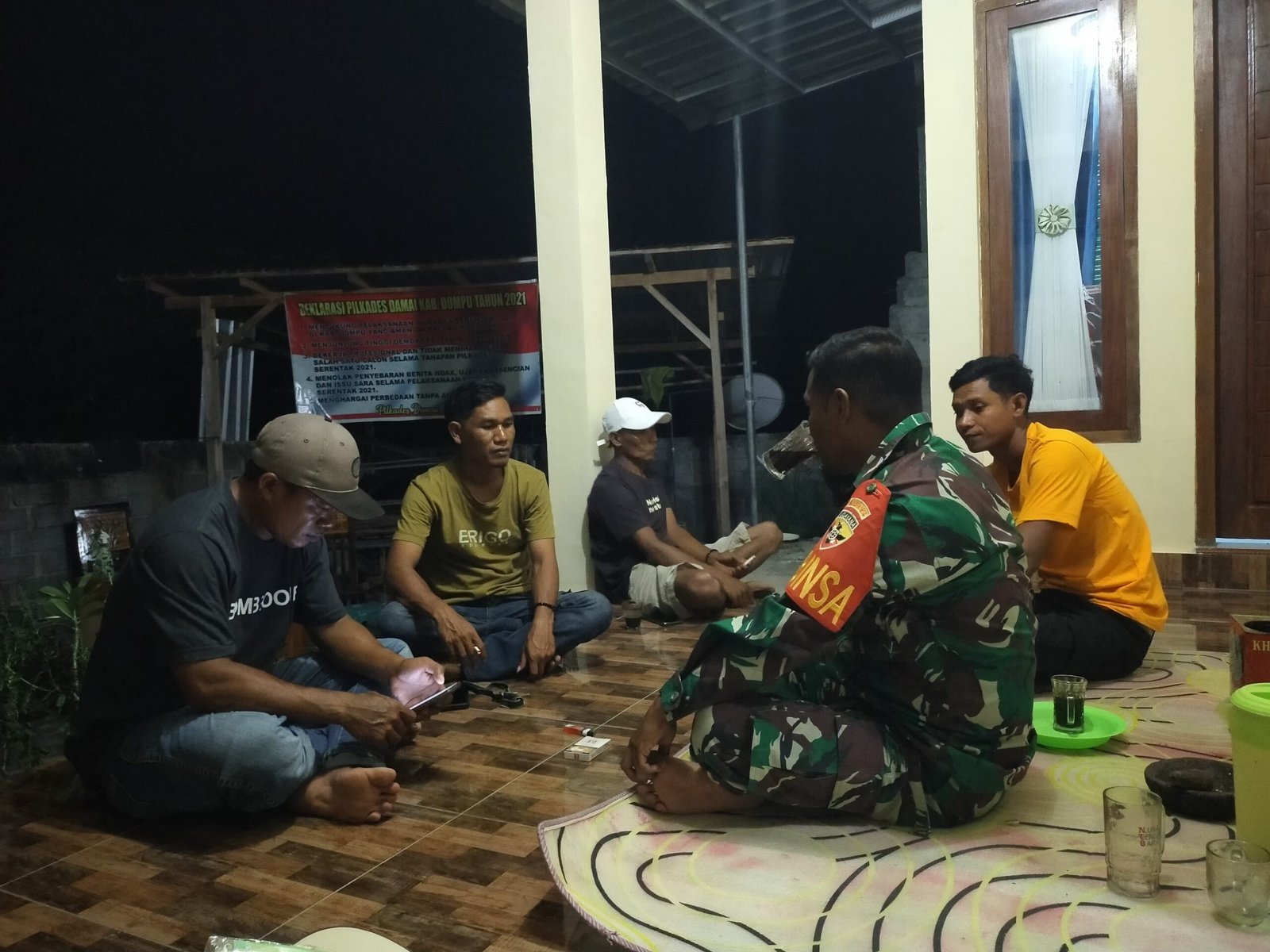 Patroli malam ini berlangsung di Dusun Sigi, Desa Hu’u, di mana Serka Rustam menyusuri area sekitar sembari menyapa dan berinteraksi dengan warga yang sedang berkumpul. Kegiatan ini tidak hanya berfungsi sebagai pemantauan situasi keamanan, tetapi juga sebagai sarana untuk membangun komunikasi yang baik antara TNI dan masyarakat.