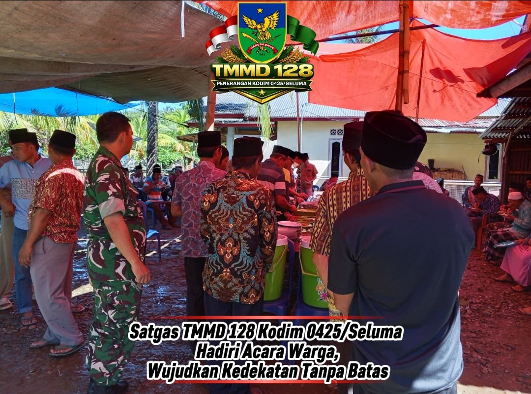 Seluma – Satuan Tugas (Satgas) dari TNI Manunggal Membangun Desa (TMMD) ke-128 Kodim 0425/Seluma menunjukkan komitmen mereka tidak hanya dalam hal pembangunan fisik, tetapi juga dalam membangun hubungan sosial yang akrab dengan masyarakat. Ini tampak jelas saat anggota Satgas memenuhi undangan yang diadakan di rumah salah satu warga Desa Lubuk Lagan.