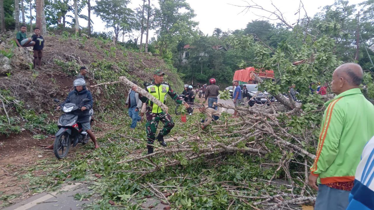 Dalam menghadapi situasi ini, Babinsa dan warga mengedepankan semangat gotong royong dengan membersihkan pohon tumbang menggunakan alat sederhana seperti parang dan gergaji. Tindakan ini diambil sambil menunggu kedatangan tim satgas terkait untuk penanganan lebih lanjut.