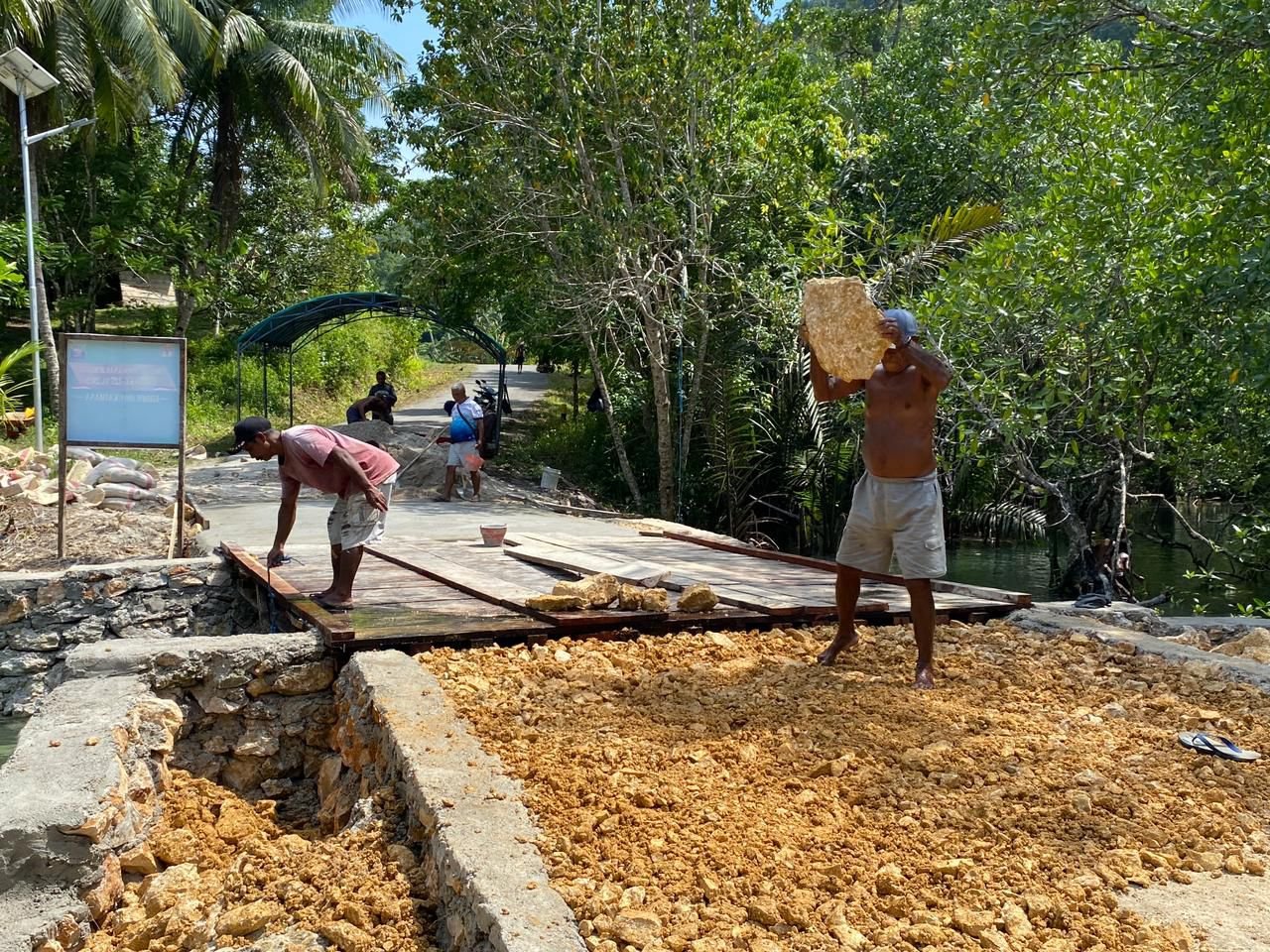Kerja Sama TNI-Polri dan Masyarakat Mempercepat Pembangunan Ujung Jembatan TMMD di Kampung Marsi