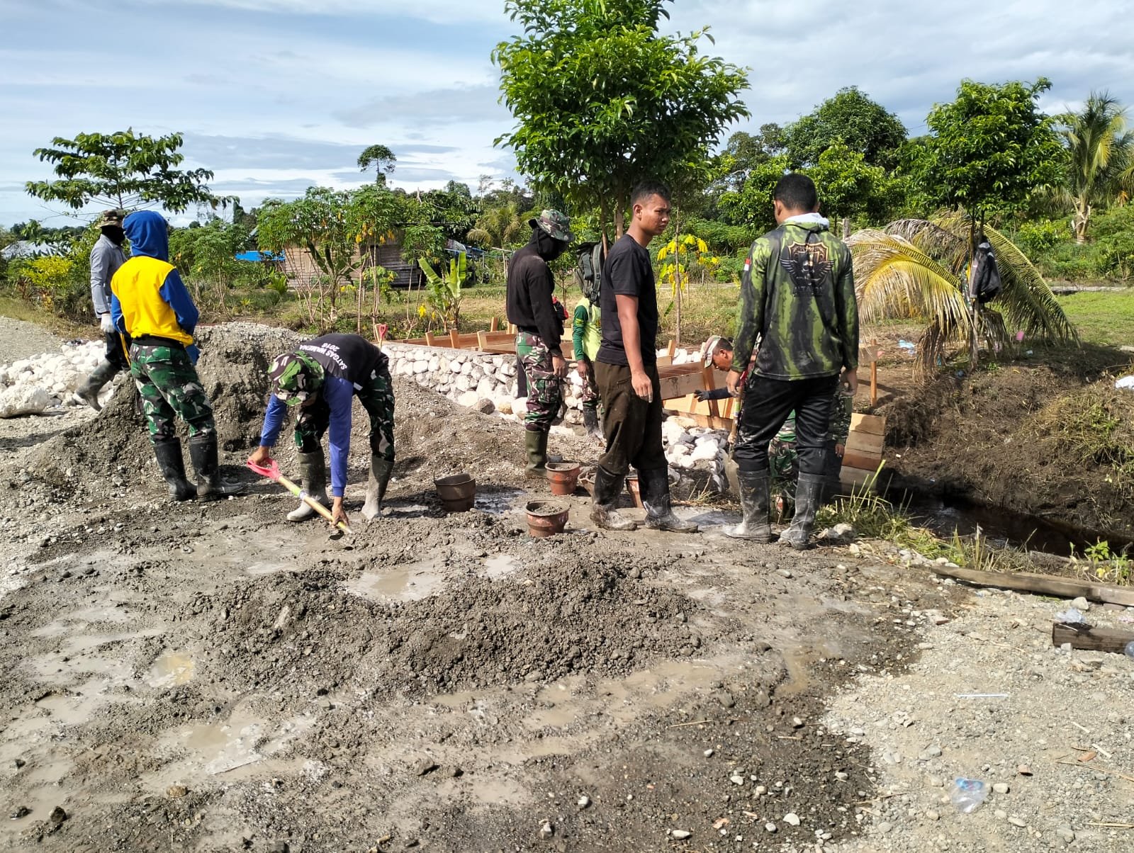 Nabire – Tingginya semangat gotong royong terlihat jelas dalam proses pembangunan Jembatan Perintis Garuda yang dilakukan oleh Kodim 1705/Nabire. Masyarakat setempat menunjukkan antusiasme yang luar biasa dengan secara sukarela berpartisipasi dalam berbagai aktivitas yang diperlukan di lapangan. Kegiatan ini meliputi pengangkutan material serta penyediaan tenaga kerja untuk mendukung jalannya proyek tersebut.