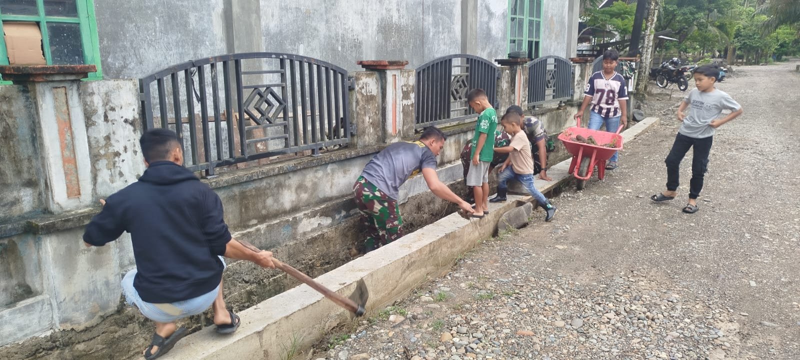Semangat kebersamaan terlihat jelas. Tidak ada perbedaan antara prajurit dan warga. Semua bekerja dalam irama yang sama, seperti roda yang saling menggerakkan.