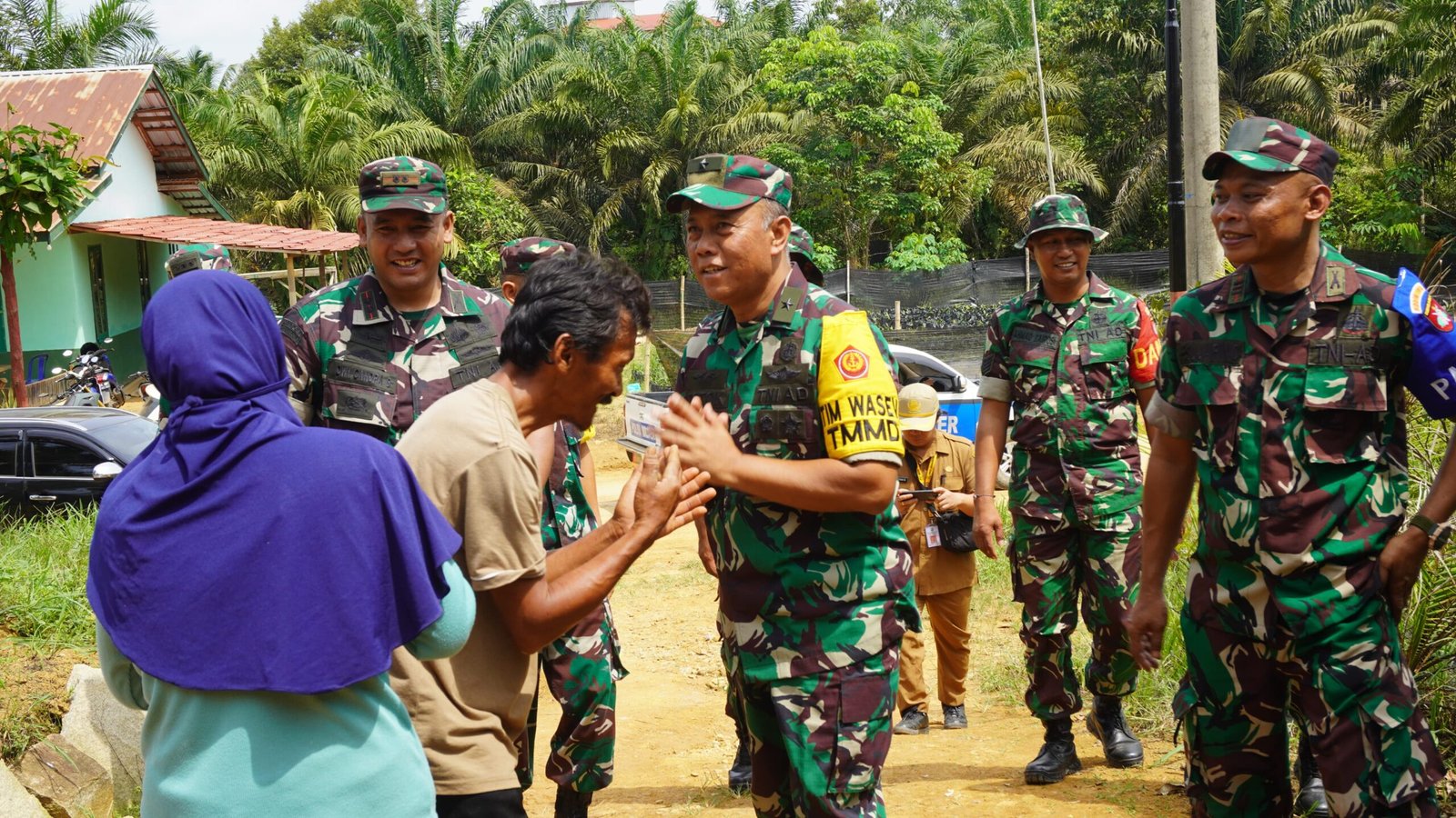 Kotawaringin Timur – Ketua Tim Pengawas dan Evaluasi (Wasev) TMMD ke-127, Totok Sulistiyono, memberikan pujian atas kinerja Satgas TMMD dan keterlibatan masyarakat dalam menyelesaikan renovasi Rumah Tidak Layak Huni (RTLH) milik Bapak Sumardi yang terletak di Desa Tri Buana.