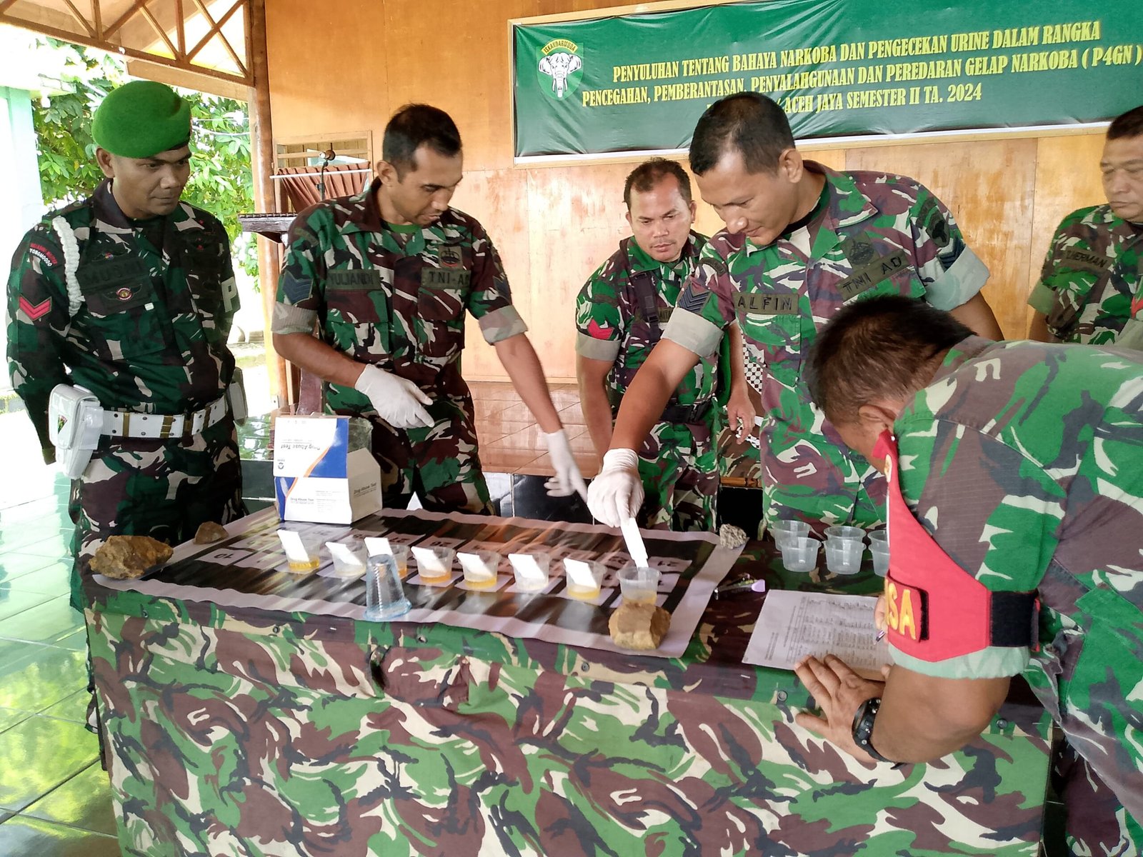 “Tes urine terhadap prajurit Kodim Aceh Jaya ini merupakan kegiatan pencegahan dini yang dilakukan oleh pimpinan sebagai bentuk pembinaan satuan dalam mencegah penyalahgunaan narkoba.”ujarnya