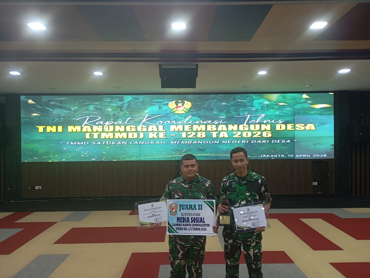 JAKARTA – Prestasi membanggakan kembali ditorehkan Kodim 0116/Nagan Raya dengan meraih Juara II dalam ajang Lomba Karya Jurnalistik (LKJ) TMMD ke-127 tahun 2026 untuk kategori media sosial.