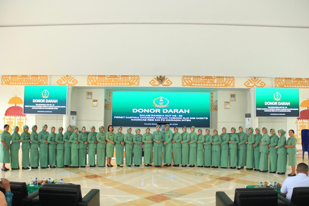 Menggala, Tulang Bawang – Dalam rangka merayakan Hari Ulang Tahun (HUT) ke-80 Persit Kartika Chandra Kirana (KCK), Kodim 0426/Tulang Bawang menggelar acara donor darah massal yang berlangsung pada Rabu, 28 Januari 2026, di Gedung Serba Guna (GSG) di Jalan Cendana, Kelurahan Menggala Selatan, Kecamatan Menggala. Kegiatan ini dihadiri oleh sekitar 210 peserta yang berasal dari berbagai kalangan, termasuk masyarakat umum, pelajar, dan anggota organisasi wanita.
