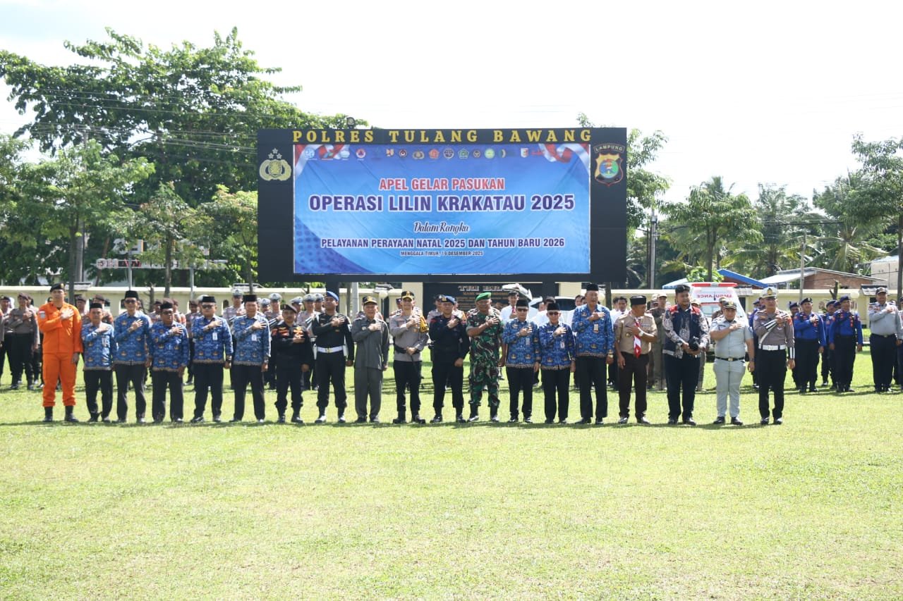 Menggala Timur (Tulang Bawang) — Dalam upaya memastikan keamanan perayaan Natal 2025 dan Tahun Baru 2026, Kodim 0426/Tulang Bawang menggelar Apel Gelar Pasukan Operasi Lilin Krakatau Tahun Anggaran 2025. Kegiatan yang berlangsung pada Jumat, 19 Desember 2025, ini diadakan di area Mapolres Tulang Bawang, Jalan Lintas Timur Sumatera KM 13, Kelurahan Lebuh Dalam, Kecamatan Menggala Timur, Kabupaten Tulang Bawang.