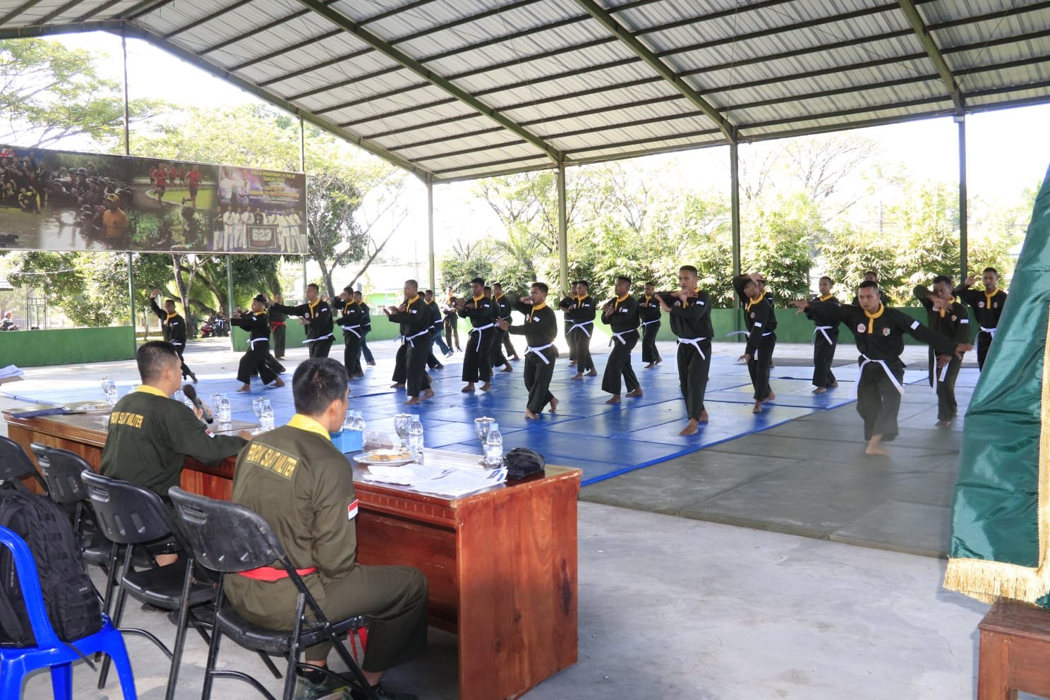 Banjarbaru – Kodim 1006/Banjar menjadi bagian penting dalam pelaksanaan Ujian Kenaikan Tingkat (UKT) Pencak Silat Militer (PSM) dari sabuk putih ke sabuk kuning yang digelar di Gedung Serba Guna Mako Yonif 623/BWU, Banjarbaru, Rabu (01/04/2026). Kegiatan ini diikuti sekitar 300 peserta dari satuan jajaran Korem 101/Antasari, sebagai upaya pembinaan kemampuan bela diri prajurit TNI AD.