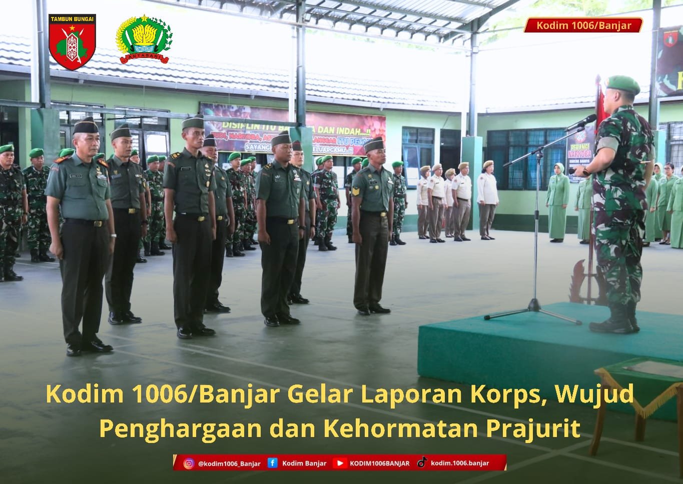 Kegiatan Laporan Korps Kenaikan Pangkat ini merupakan tradisi di lingkungan TNI Angkatan Darat sebagai bentuk laporan resmi prajurit kepada pimpinan atas penyematan pangkat baru, sekaligus menjadi momentum untuk meningkatkan semangat pengabdian dan kinerja ke depan.(1006).
