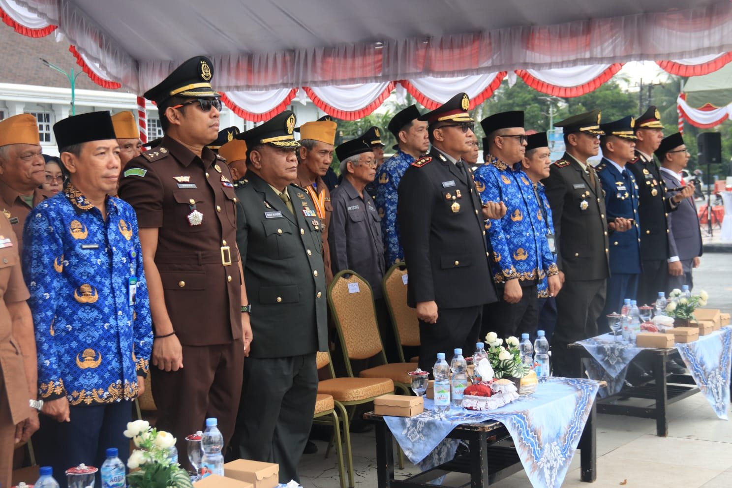 Kegiatan diikuti oleh empat kompi upacara dari unsur TNI, Polri, BPBD, Dishub, Satpol PP, dan ASN, serta ditutup dengan doa dalam suasana tertib dan penuh semangat nasionalisme.(1006).