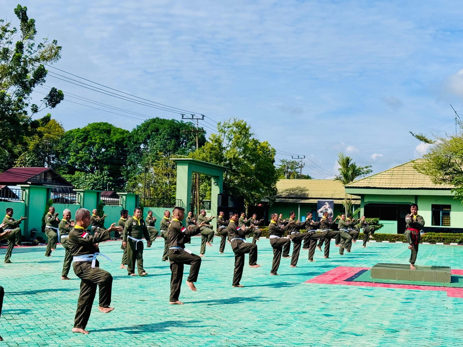 TAPIN – Dalam upaya memelihara ketangkasan dan kebugaran fisik prajurit, Kodim 1010/Tapin menggelar latihan Pencak Silat Militer (PSM) yang dilaksanakan secara rutin dua kali dalam seminggu. Kegiatan ini tetap dilaksanakan dengan penuh semangat meskipun berlangsung di bulan suci Ramadhan.