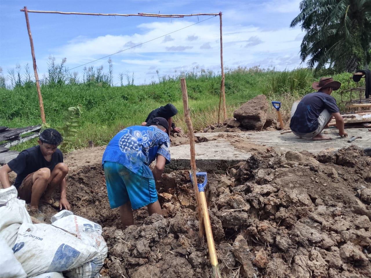 Saat ini, Jumat (10/4/26), pekerjaan difokuskan pada tahap perakitan besi sebagai struktur utama jembatan, serta pendalaman lubang pondasi pada pangkal jembatan. Tahapan ini merupakan bagian penting untuk memastikan kekuatan dan ketahanan konstruksi jembatan dalam jangka panjang.