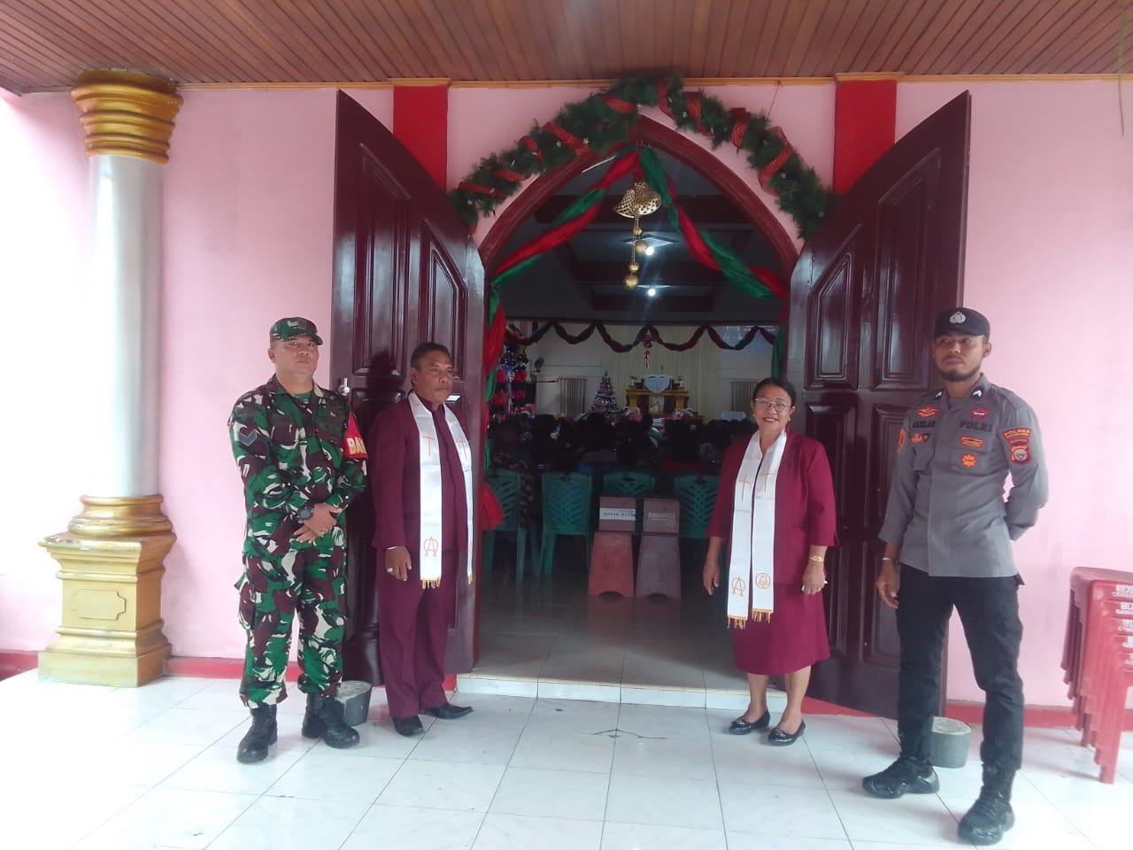 Halmahera Utara – Dalam rangka mendukung kelancaran ibadah Natal, Kodim 1508/Tobelo melaksanakan pengamanan di berbagai gereja di Kabupaten Halmahera Utara pada Kamis, 25 Desember 2025. Kegiatan ini merupakan bagian dari upaya TNI Angkatan Darat untuk membantu pemerintah daerah dalam menciptakan stabilitas keamanan dan ketertiban masyarakat, terutama selama perayaan hari besar keagamaan.