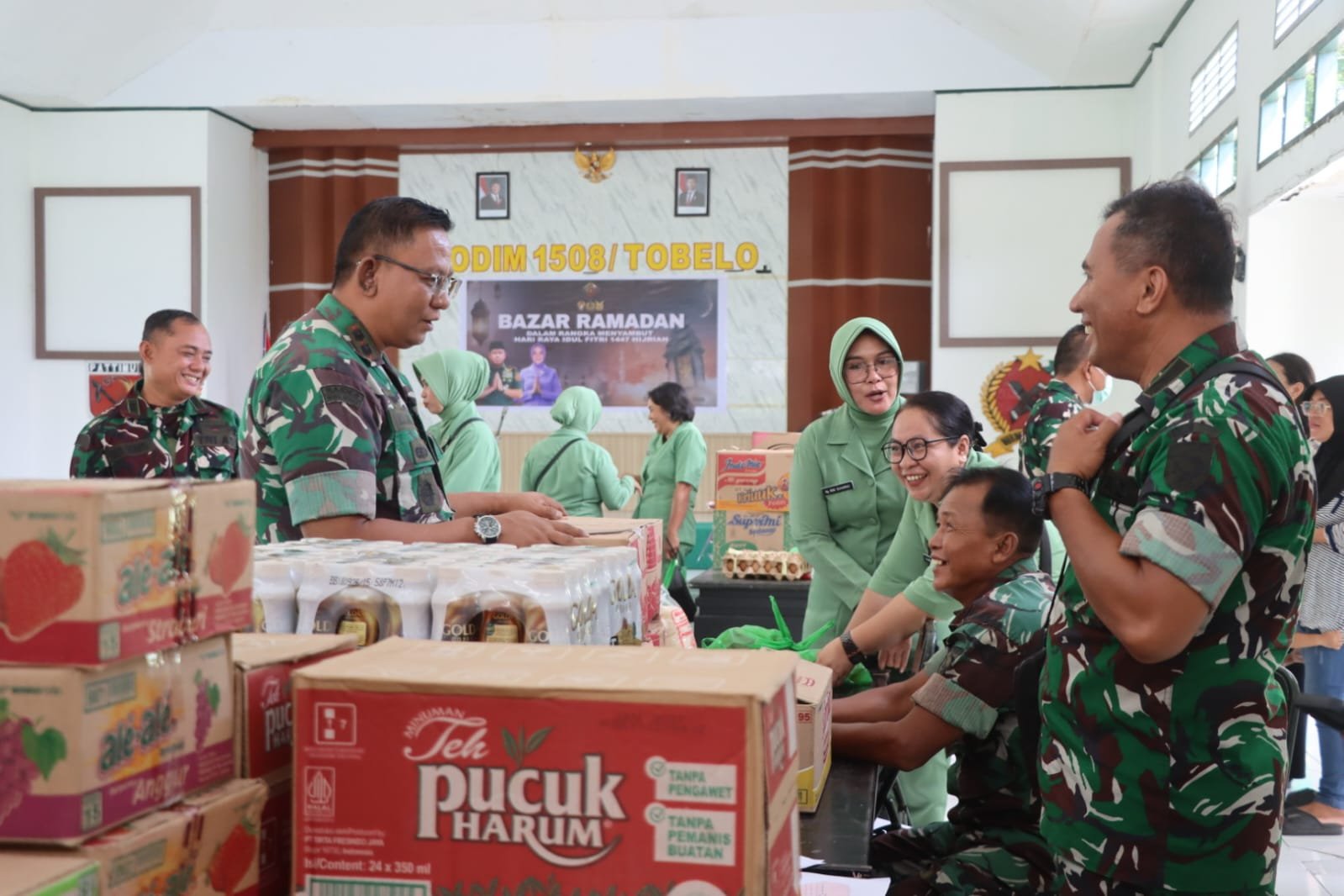 Halmahera Utara – Dalam rangka merayakan Hari Raya Idul Fitri 1447 Hijriah, Kodim 1508/Tobelo mengadakan Bazar Ramadan yang berlangsung di Aula Makodim 1508/Tobelo, yang terletak di Jalan Ir. Hein Namotemo, Desa MKCM, Kecamatan Tobelo, Kabupaten Halmahera Utara, pada Selasa (17/03/2026).