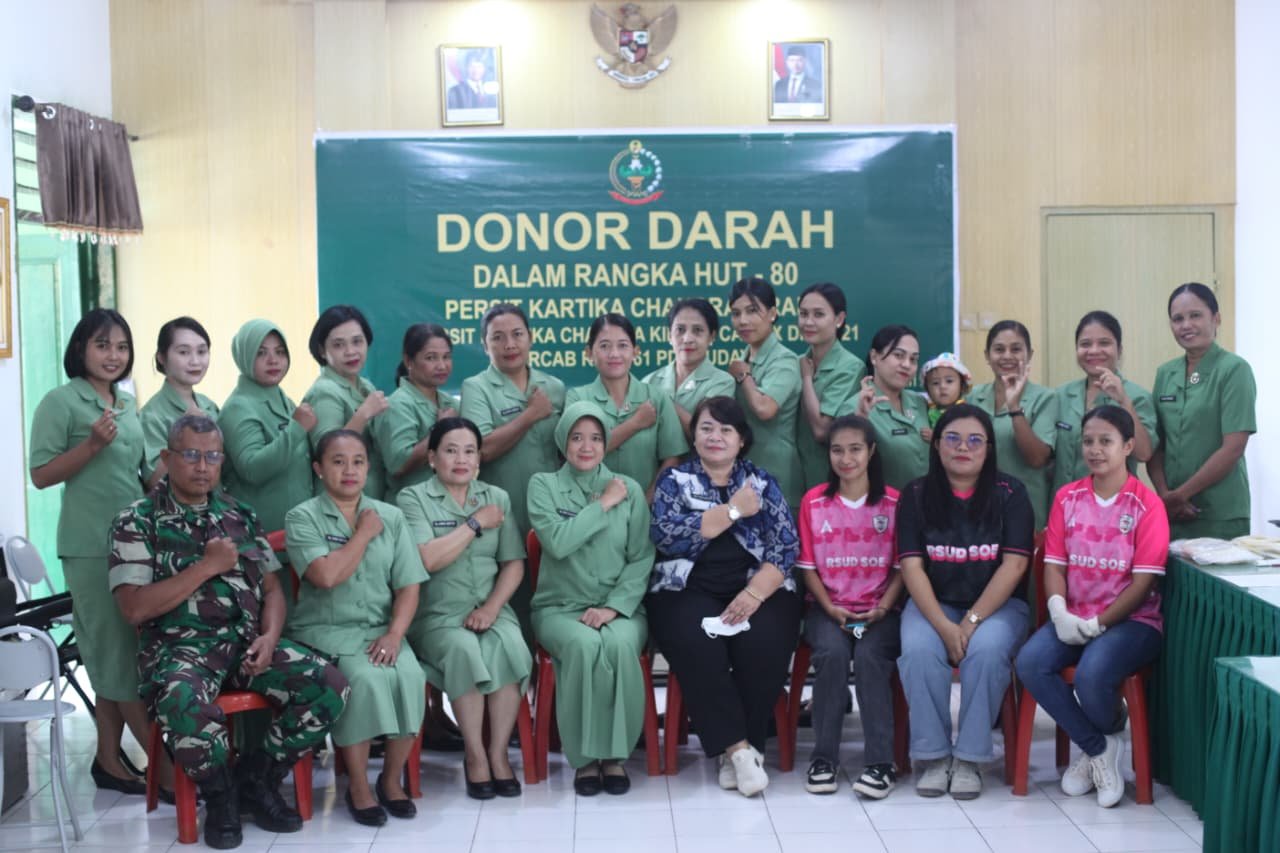 Timor Tengah Selatan – Dalam rangka merayakan Hari Ulang Tahun (HUT) Korem 161/Wira Sakti yang ke-65 dan HUT Persit Kartika Chandra Kirana (KCK) ke-80 pada tahun 2026, Kodim 1621/Timor Tengah Selatan (TTS) menyelenggarakan kegiatan donor darah. Acara ini berlangsung di Aula Makodim 1621/TTS, yang terletak di Jalan Gajah Mada, Kelurahan Cendana, Kabupaten TTS, pada hari Kamis, 5 Februari 2026.
