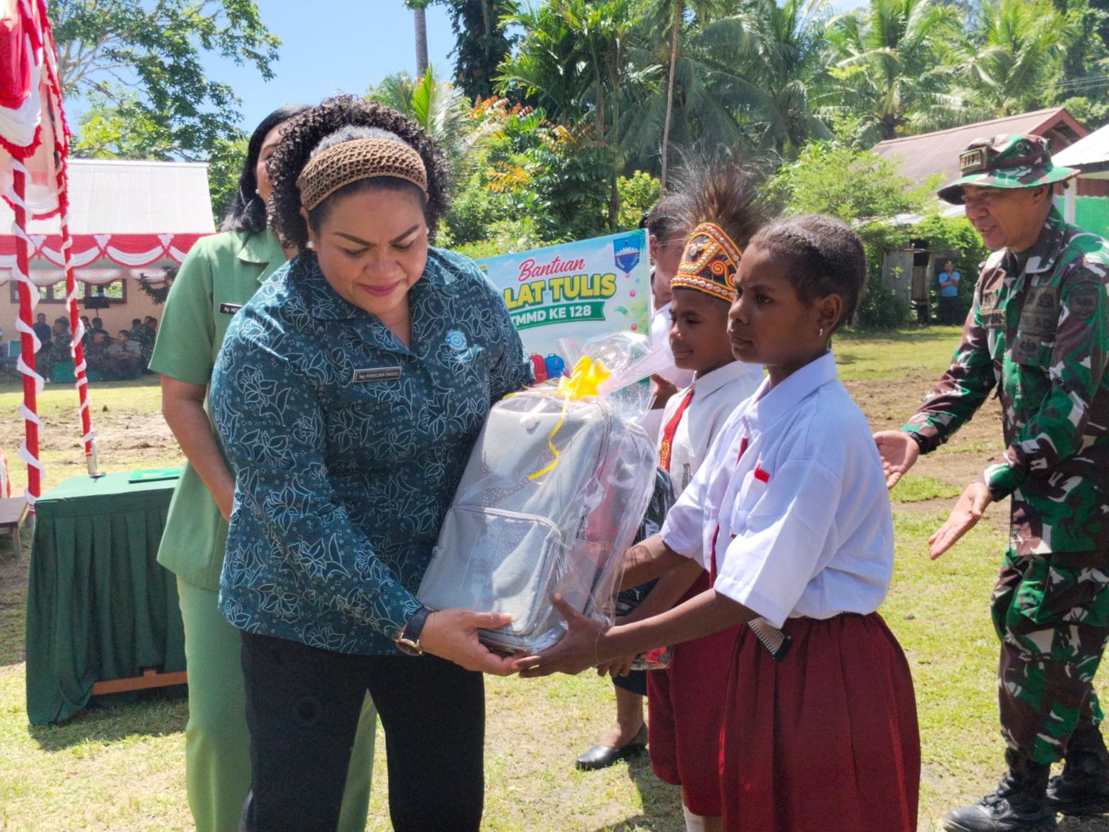 Setelah acara pembukaan, rangkaian kegiatan dilanjutkan dengan penyerahan bantuan sembako kepada warga serta distribusi buku tulis untuk anak-anak sekolah yang disampaikan oleh Persit Kartika Chandra Kirana Daerah XVIII/Kasuari. Inisiatif ini bertujuan untuk meningkatkan kesejahteraan dan akses pendidikan bagi generasi muda.
