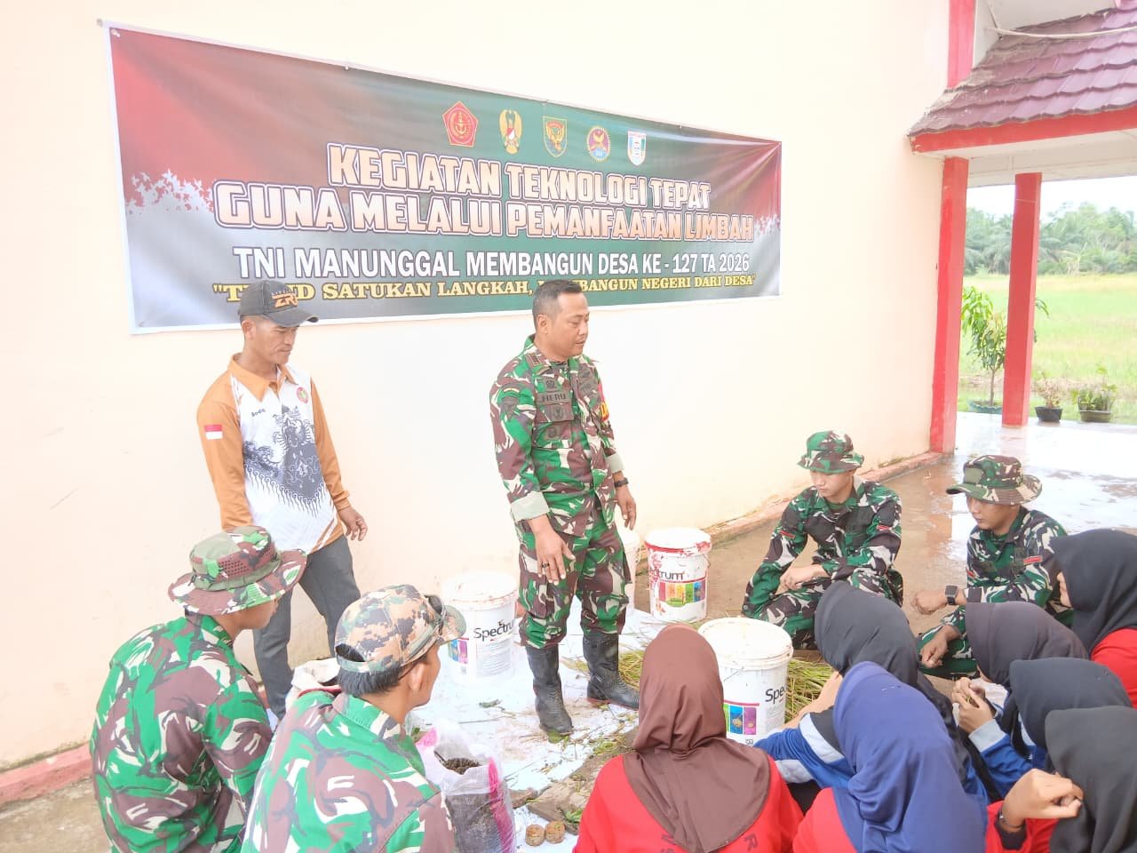 Banyuasin – Anggota Satuan Tugas (Satgas) TNI Manunggal Membangun Desa (TMMD) ke-127 Kodim 0430/Banyuasin berkolaborasi dengan siswa SMPN 3 Pulau Rimau di Desa Wonosari untuk melaksanakan kegiatan yang berfokus pada teknologi tepat guna. Kegiatan ini bertujuan untuk mengolah limbah jerami padi menjadi pupuk organik yang berguna bagi pertanian.