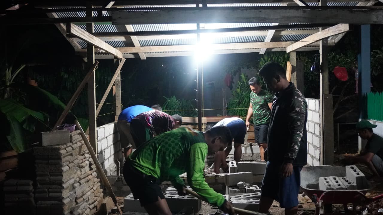 Kotawaringin Timur – Sinergi antara Satgas TMMD Reguler ke-127 dan warga desa terlihat jelas dalam proses pembangunan fasilitas Mandi Cuci Kakus (MCK) dan tempat wudhu di Mushola Mudalil Muttakin yang berlangsung hingga larut malam pada Jumat (13/02/2026). Pekerjaan ini dilakukan dengan menggunakan penerangan tambahan untuk memastikan bahwa setiap tahap konstruksi dapat berjalan dengan lancar. Dengan semangat gotong royong, warga bersama anggota Satgas bekerja sama menyelesaikan proyek ini.