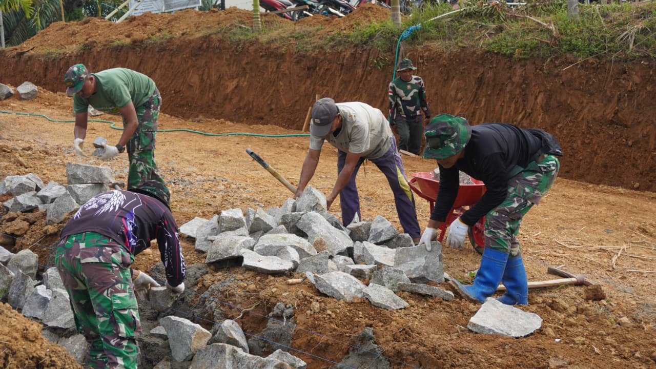 Dalam proses pelaksanaannya, anggota Satgas dan warga membagi tugas dengan efisien. Sementara beberapa orang bertugas mengangkat batu belah, yang lainnya mempersiapkan adukan semen untuk pemasangan siring. Kekompakan yang terlihat mencerminkan kuatnya kerjasama antara TNI dan komunitas lokal.