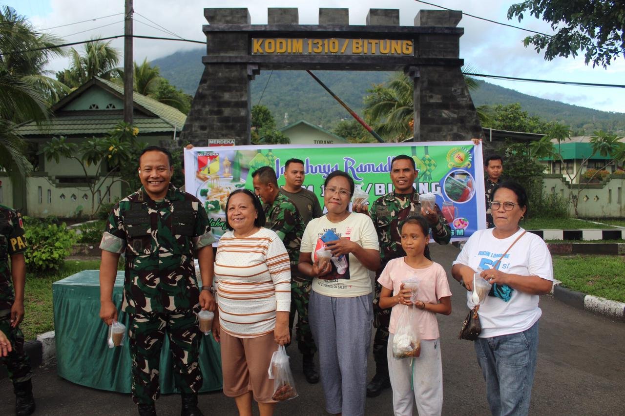 BITUNG – Dalam rangka memeriahkan bulan suci Ramadhan, pada Jumat, 27 Februari 2026, anggota dan Persit Kodim 1310/Bitung melaksanakan kegiatan pembagian Takjil kepada masyarakat Kota Bitung. Kegiatan ini dipimpin oleh Dandim 1310/Bitung, Letkol Inf Dewa Made DJ, serta dihadiri oleh beberapa pejabat lainnya, seperti Pasi Pers Kodim 1310/Btg, Lettu Inf Yakob Judas, dan Pasi Ops Kodim 1310/Bitung, Lettu Inf Edyzon Kasenda.