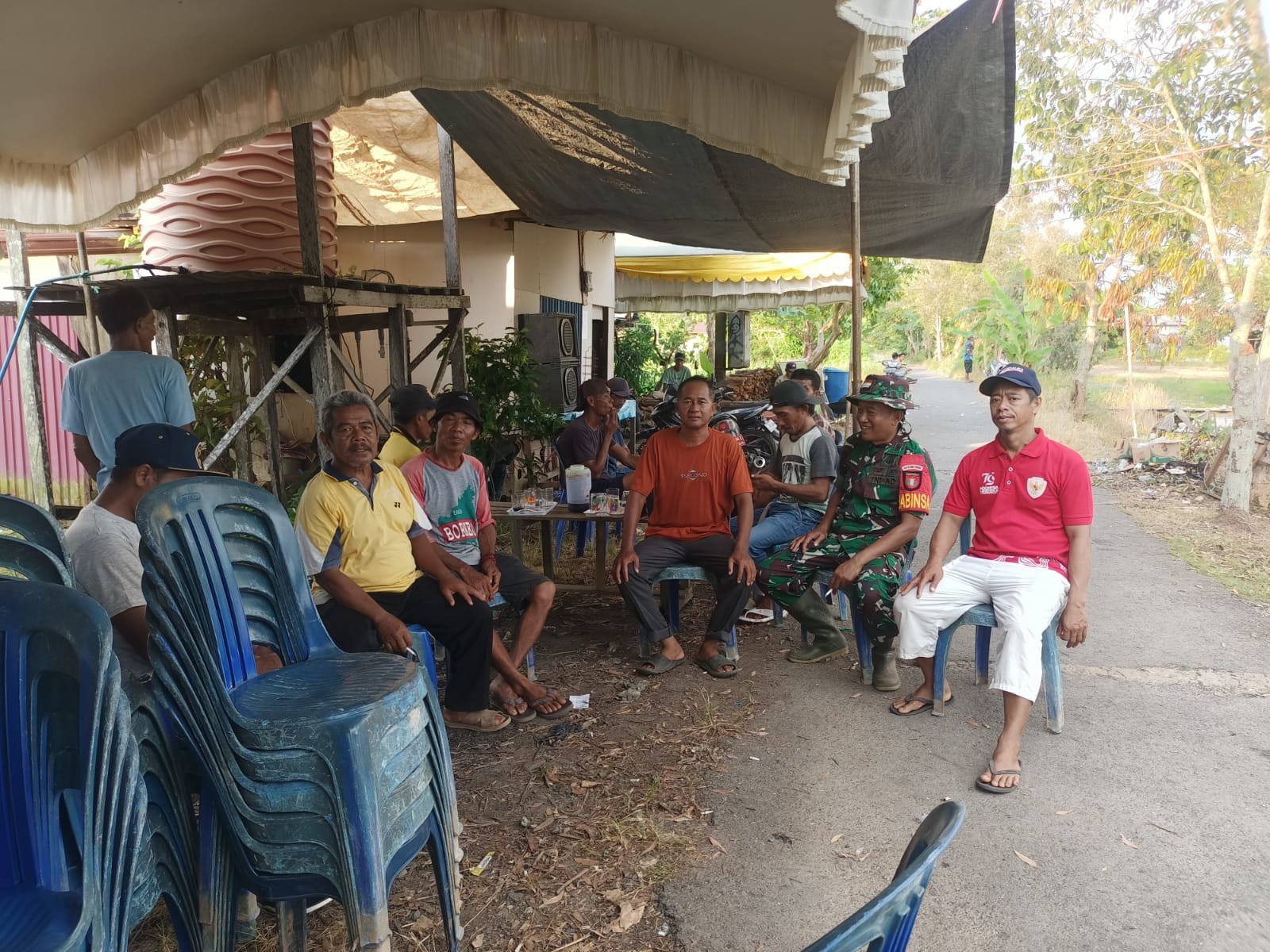 Barito Kuala – Babinsa Koramil 1005-08/Anjir Muara, Pelda Marsodik, melaksanakan kegiatan Komunikasi Sosial (Komsos) bersama masyarakat di wilayah Kecamatan Anjir Muara, Kabupaten Barito Kuala, pada Selasa (24/03/2026). Kegiatan ini berlangsung dalam suasana penuh keakraban di bawah tenda sederhana, di mana warga berkumpul untuk berdiskusi sekaligus mempererat hubungan antara aparat teritorial dengan masyarakat.