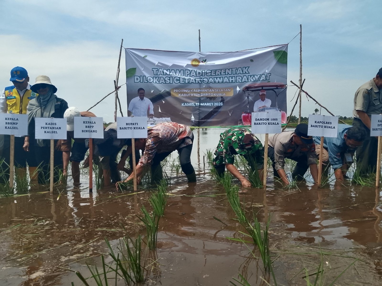 Barito Kuala – Kementerian Pertanian bersama Pemerintah Kabupaten Barito Kuala melaksanakan Gerakan Tanam Serempak pada program Cetak Sawah Rakyat (CSR) 2026, bertempat di Desa Puntik Dalam, Kecamatan Mandastana, Kabupaten Barito Kuala, Kamis (12/03/2026). Kegiatan ini merupakan bagian dari program nasional yang digelar serentak di seluruh Indonesia untuk mendukung ketahanan pangan dan pencapaian swasembada berkelanjutan.