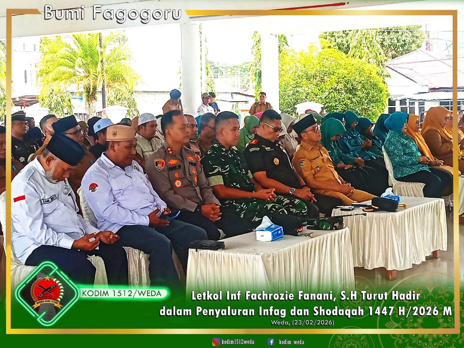 Halmahera Tengah – Pada Senin, 23 Februari 2026, Baznas (Badan Amil Zakat Nasional) Halmahera Tengah melaksanakan kegiatan penyaluran infak dan sedekah, yang dikenal juga sebagai sembako berkah Ramadan, di Pandopo Palcilno Weda, Desa Fidi Jaya, Kecamatan Weda, Kabupaten Halmahera Tengah, Provinsi Maluku Utara. Acara ini dihadiri oleh berbagai tokoh penting, termasuk Bupati Halmahera Tengah, Dr. Ir Ikram M Sangadji, M.Si, serta Letkol Inf Fachrozie Fanani, S.H, selaku Dandim 1512/Weda.